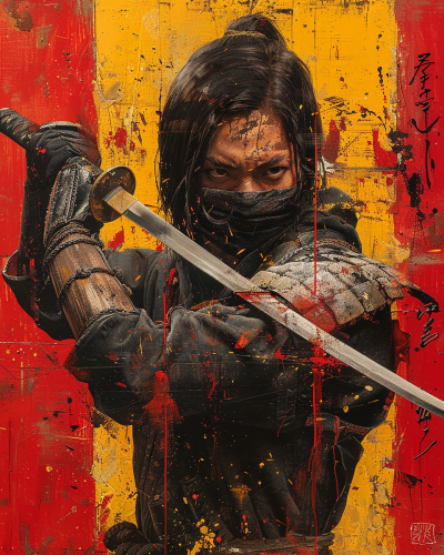 the samurai wearing holds a sword, in the style of anime aesthetic, yellow and black, Ancient japanese warrior, Antique Edo Period Kabuto helmet, Orientalist oil painting, in the style of Jean-Léon Gérôme, --ar 4:5 --v 6.0 --s 750 --style raw