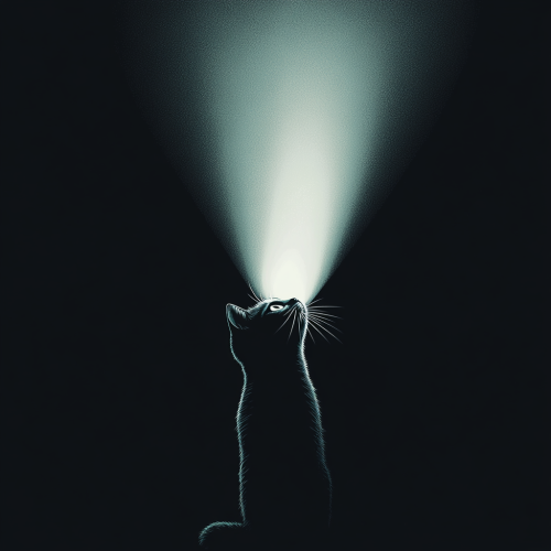 minimalist logo, a cat is sitting in front of a movie projector, looking towards the camera and up, the light beams are coming out from behind the cat, the projector can’t be seen, minimal, minimalist