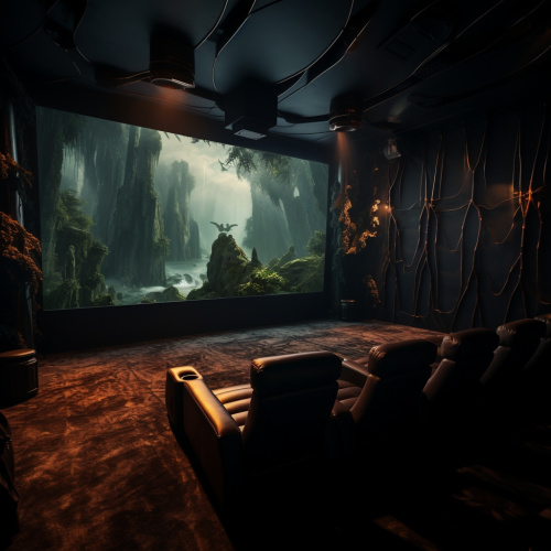 A very small ball, the size of a tennis ball, is on a very small round table. You can see the left wall, the front wall and the ceiling a little. You can't see the right wall. It's all in the living room. The ball projects a movie on the left wall and the ceiling, not on the front wall or the right wall