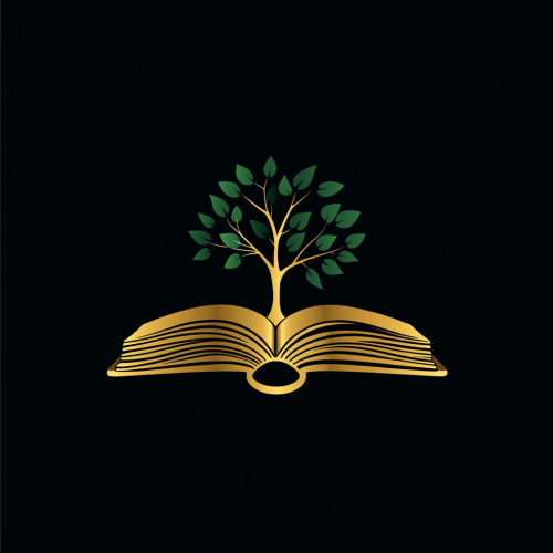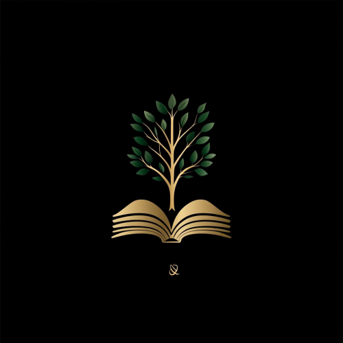 create a logo with a semi-closed book you can only see the top of the book with a tree growing out of it stretching up to the right. Use gold for the book, a metallic green for the tree. Clean lines