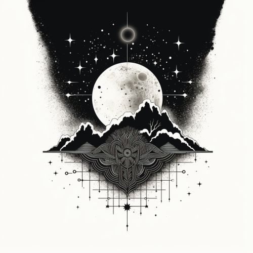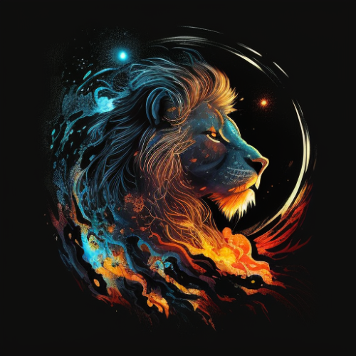 celestial lion tshirt design, depth, 2d vector, black backround, --v 4