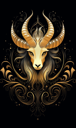 gold astrology symbol for a Capricorn. Black background --ar 9:15