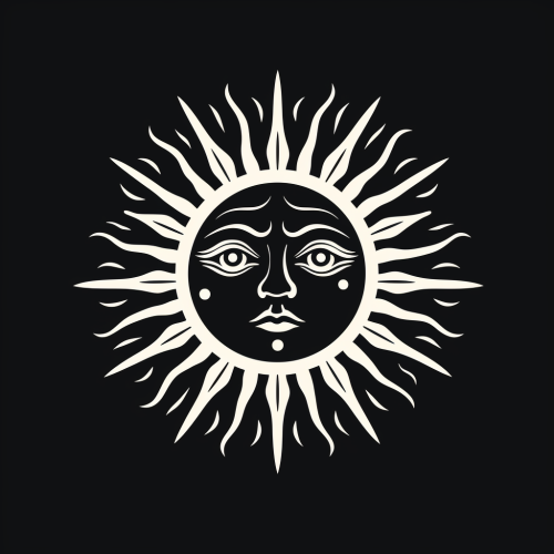create a logo for a business called Soleil Tarot, include imagery of a witchy boho sun and tarot cards, simple line art, simple shapes for a logotype, black and white