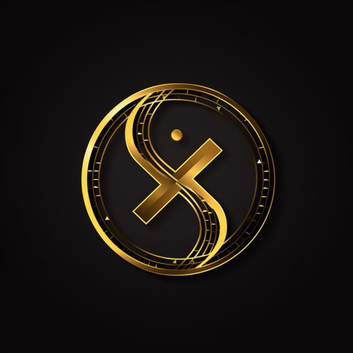 geometric futuristic logo symbol with letter 'T' and infinity symbol, black backround, golden colors, vector, --v 5.0