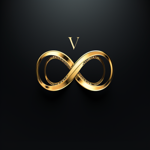 Create a pictorial logo for ‘Infinity Collection’ featuring an infinity simbol, use the letter "V" to reflects the brand identity incorporating architectural elements to represent the company’s high-level design expertise. --s 250