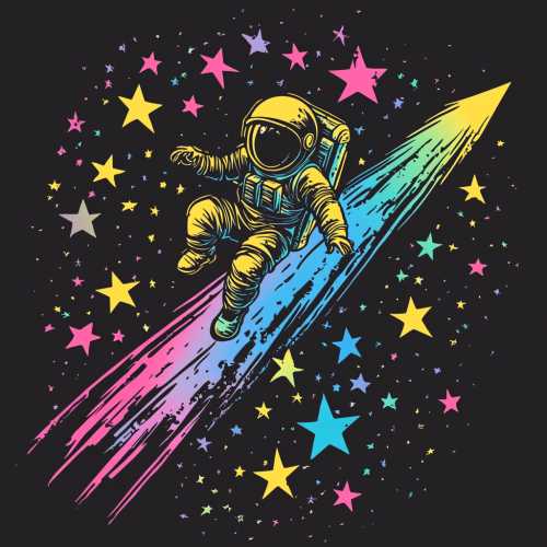 Design a graphic that has stars and one shooting star. 20 medium size Stars should be various in size as each student name will be put in 1 large shooting star in the middle and 10 medium stars. 1 cool space lady astronaut. Vibrant colors.