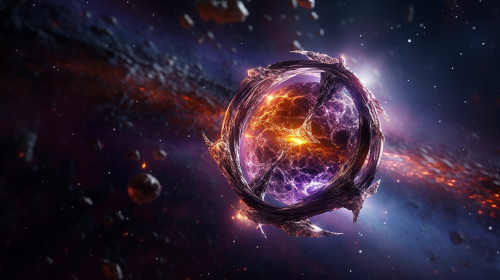 a wideshot zoomed out of a glowing neutron star in space, deep space and stars in background, massurrealism, intricate details, clear features, global illumination Nikon D850 DSLR 200mm f/1.8 lens, f/2.2 aperture, 50k, 3D, UHD, rtx on --v 5.1 --s 1000 --ar 16:9