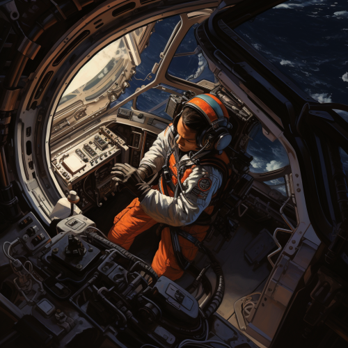 astronaut climbing into the spacecraft, technicians assisting, with a view of the cockpit enclosing,realistic