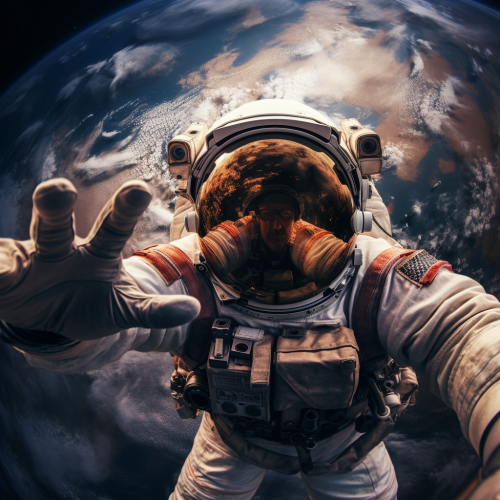 Hand of an astronaut floating in space, reaching out to the stars, pov shot from astronaut --v 6.0 --ar 16:9