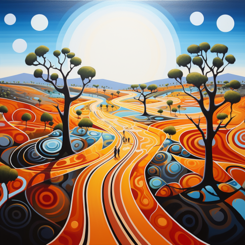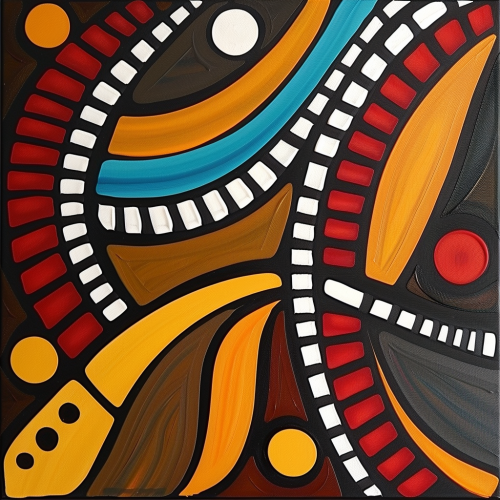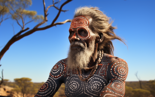 photographic Aboriginal Art, designed to remind the aboriginal elders of their past history, with a deep emotional reminder, that they are the original custodians of the land --ar 16:10