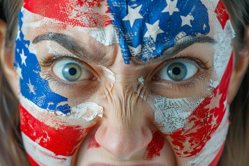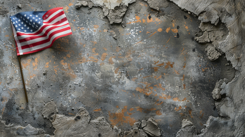 american flag on concrete stone background with space for writing. stock photo. --ar 16:9