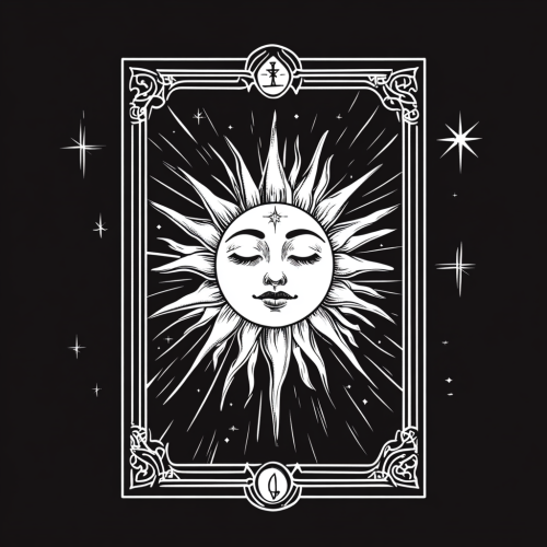 create a logo for a business called Soleil Tarot, include imagery of a witchy boho sun and tarot cards, simple line art, simple shapes for a logotype, black and white