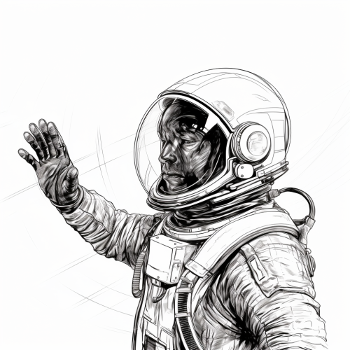 draw, sketch, an astronaut taken of the hand of a Grey Alien, line work, white background, no shade, low detail, design in pro create
