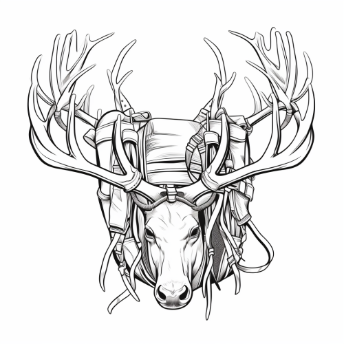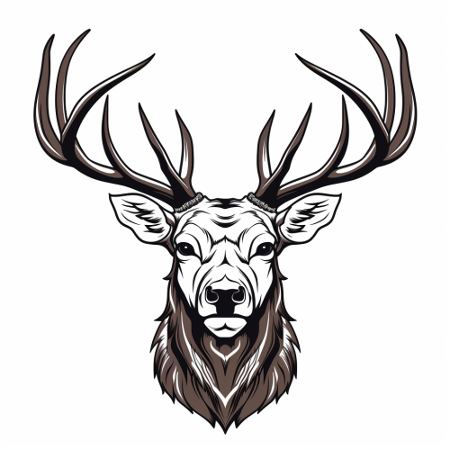 Elk head with giant antlers. Simple, black-and-white vector line-art illustration in the style of Grand Theft Auto 2D Game Art. White background.