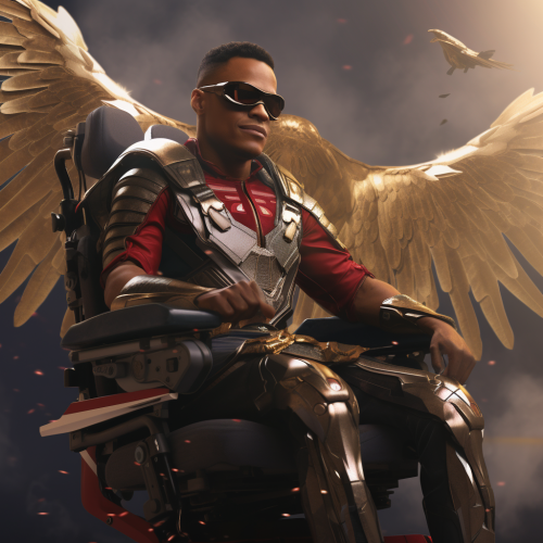 un personnage des avengers gonflable dans le ciel elevation comme un dirigeable rond facon koon ballon avec des ficelles --v 5.2