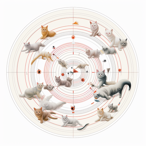 coloring page, crisp lines,white background, a mandala capturing the playful movement of kittens with spinning toys, ar 17:22, 1 bit graphic, simplified