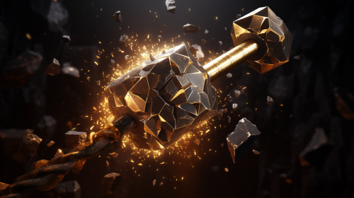 baroque style, blacksmith hammer, square type head, metal handle with gold, 3d game concept --ar 16:9