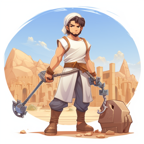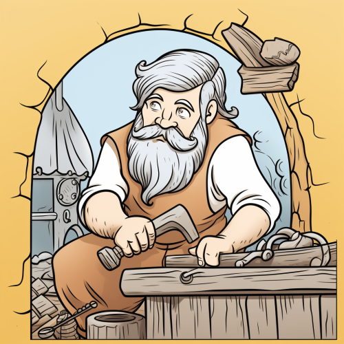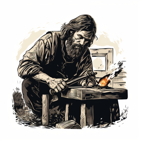 medieval blacksmith holding a hammer using no color, thick line, low detail, no shading, no grayscale, only outlines, without background