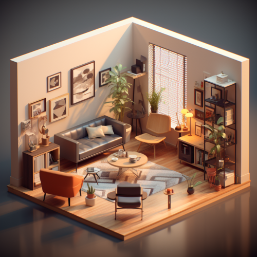 a tiny cute isometric low poly blender 3d model scene at a 30 degree angle of a Basquiat art style modern luxury living room, natural lighting, ultra detailed--fast