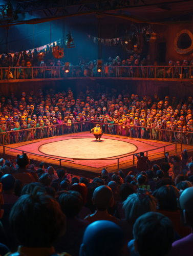 do a mexican wrestling arena with a huge audience wearing masks and screaming, in the style of a despicable me movie, the ring of wrestling is madeof sea containers, --ar 3:4