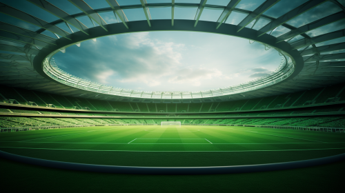 A dilapidated sports arena, rusted metal bleachers and broken seats, grass and weeds growing through the cracks in the field, the roof partially collapsed, remnants of old banners hanging from the rafters, eerie silence filling the space where thousands once gathered, nature reclaiming the urban ruin, cinematic, high-resolution, 8K, UHD --s 750 --style raw --v 6.0 --ar 16:9