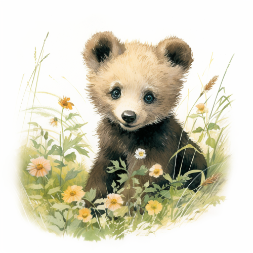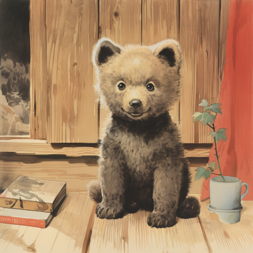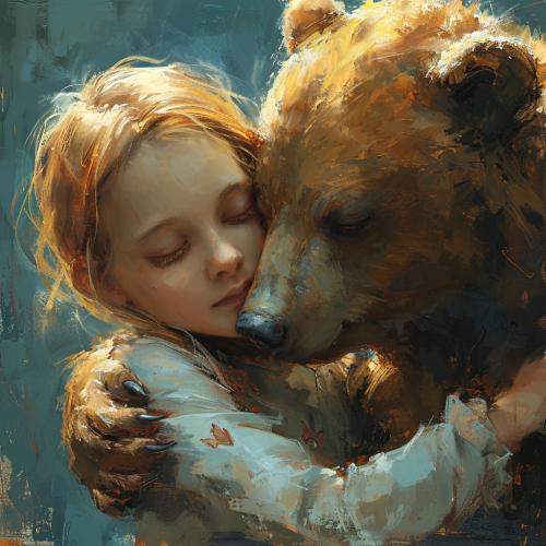 bear cub comforts a girl. Best friends forever, Artistic, --v 6.0 --s 250