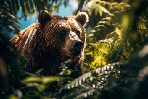 A huge brown bear suddenly appears out of the bushes in the forest. It is a large, ferocious, and frightening brown bear. The brown bear attacks with its sharp claws raised wide, its large mouth open, and its sharp fangs bared. The appearance of the brown bear must be realistic and terrifying, conclusively depicting the horror of nature's fierce beasts. The background is deep in the forest. The atmosphere is gloomy and eerie. A photographic representation of reality. --no illustration, painting, --style raw --ar 9:16 --v 6.1