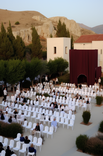 fashion show in front of monumental airport in bodrum, silver materiality, designed by rifat ozbek, valerio olgiati, ricardo bofill, kazuyo sejima, simple aesthetics, scanner photography, 20 megapixels, minimalist setting --ar 2:3 --style raw --chaos 70 --weird 70 --stylize 150