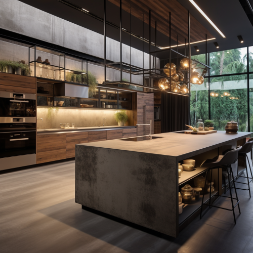 extraordinarily beautiful modern kitchen mix of organic, industrial and modern style with indirect light and a kitchen island