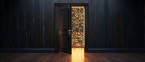 4w A futuristic image of a circle and a questionmark on it, surrounded by shimmering binary code and data streams. In the background, a network of connected points of light representing the digital world. The colors are primarily blue and purple to convey technology and security. The style is modern and highly detailed, with a slight glow around the shield for extra emphasis. --ar 128:83 --v 6.1