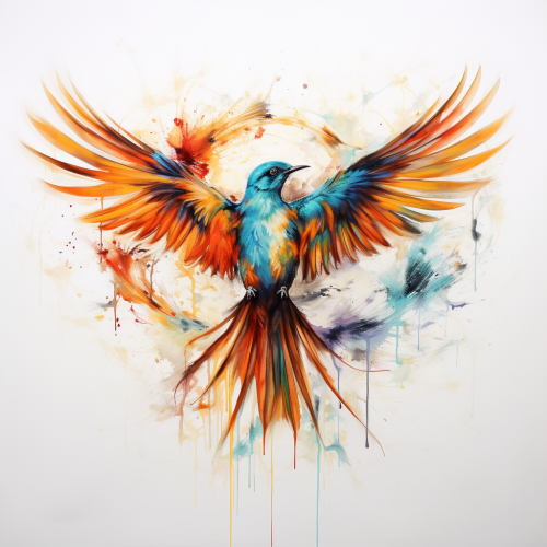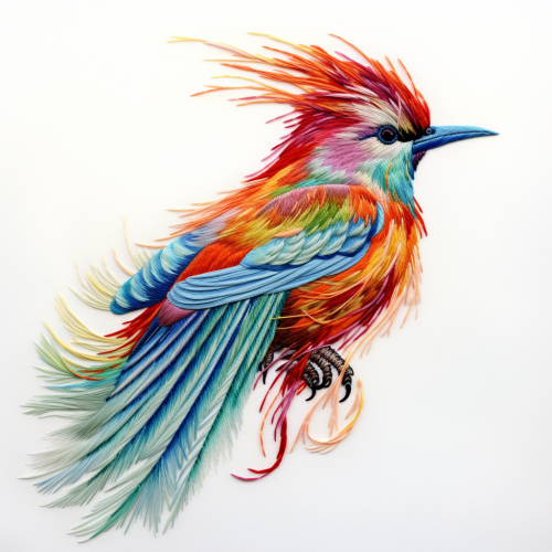 do an embrodiery image of a beautiful bird with its feathers half open side view in multicolour with white background