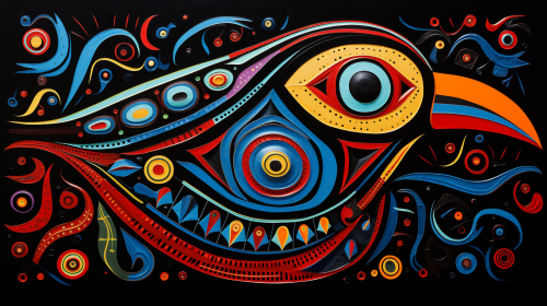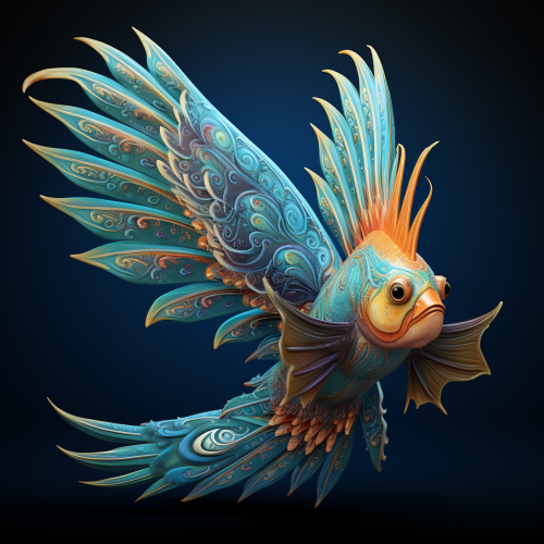 Bird and fish linked together in artwork