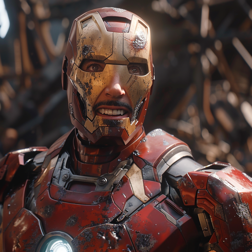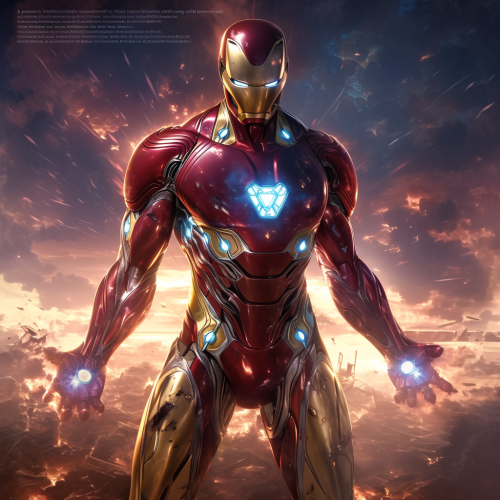 "A powerful, futuristic superhero inspired by Iron Man standing confidently in a cinematic 16:9 format. The hero is wearing a sleek, high-tech red and gold armored suit, with glowing blue lights on the chest (arc reactor), palms, and eyes. The armor has a metallic sheen, featuring intricate technological details and reinforced plating. The background is a dramatic, stormy sky with clouds and a faint glow of light reflecting off the suit. The hero stands on a metallic surface, exuding confidence and readiness, with a glowing energy aura around him, symbolizing his advanced technology and immense power." --s 750 --style raw --niji 6