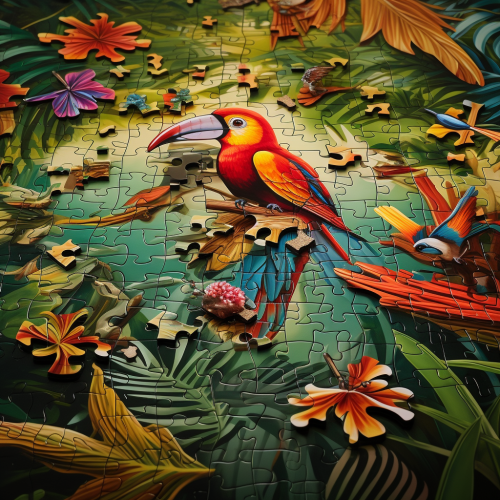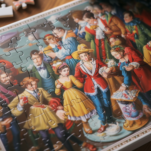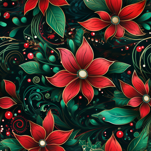 Generate a visually complex Christmas-themed image using only shades of red and green. The image should include multiple intricate elements, such as tangled strands of holiday lights, ornate ornaments, and densely decorated Christmas trees. Create an image that would make for a challenging jigsaw puzzle while maintaining the unmistakable essence of the holiday season. --tile
