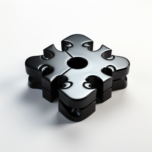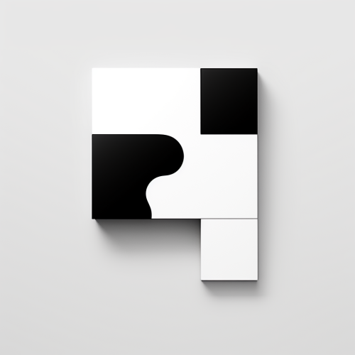 Design a bold and modern logo centered around a modular 'M'. The 'M' should be composed of sharp, clean lines that resemble interlocking puzzle pieces or gears, embodying the concept of modularity. Include subtle design elements like upward arrows or stylized growth charts to symbolize progress and ambition. The color palette should be stark white on a black background for a striking contrast.