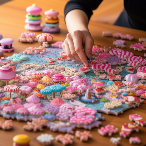 an intricate bright colored photorealistic design for an 1000 piece puzzle with kawaii Japanese treats