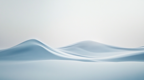 Abstract background with blue andwhite desert waves, and a large round window, rendered in the style of Cinema 4D, with a minimalistic design and simple geometric shapes. A calm landscape with light reflection on the surface of sand, creating a futuristic atmosphere. The blue sky is dotted with clouds, and the natural lighting contributes to the tranquil mood