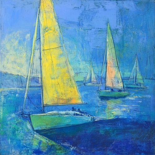 Light pastel blue sea painting