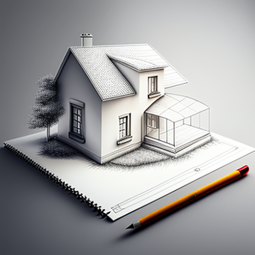 create me an image of a 2D drawing of a house and 3D render it, with white backround --v 4