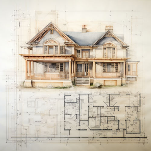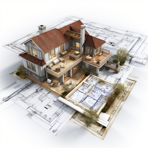 a blueprint architect's plan for a house, defining the specifications of walls in terms of both their length and thickness, which form the structural foundation of the building. Additionally, incorporating openings such as doors and windows is essential for proper ventilation, natural light, and aesthetics. Efficient space allocation and layout planning are critical to ensure optimal functionality and aesthetic appeal. Determining the construction level provides the framework for the building's elevation and design. Dimensioning helps accurately represent the scale of various components within the plan, providing precision in construction.