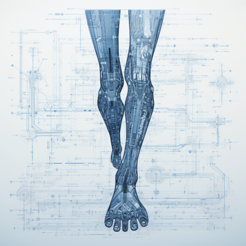 futuristic architectural anatomical cyber foot blueprint made by artificial intelligence on geometrically accurate drawing paper