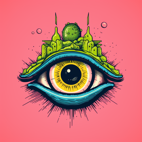a poster for food photography studio. In the vibrant style postmodenism, pop art. Icon- third-eye logo.