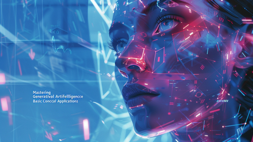 develop a cover for the course "Mastering Generative Artificial Intelligence for Business: Basic Concepts and Practical Applications", Business, meeting with AI elements, Light image, photorealism --v 6.0 --ar 16:9