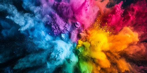 Color Explosion with Powder and Brush in Vibrant Display Tags: color explosion, powder and brush, vibrant colors, paint burst, color powder, colorful artwork, creative explosion, art supplies, artistic display, bright colors, art in motion, color splash, vibrant art, color concept, powder burst, color creativity, paint explosion, artistic expression, vivid colors, colorful powde --ar 2:1 --style raw