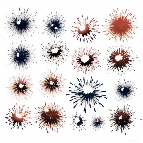 many explosion 2D pictogram, icon, indie game, white background --no plane, building, character, animals, fire, flames, water, planet earth, water, tree, trees, electronics, computer, phone, camera, woman, people, train, rail