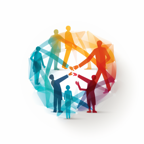5 handshake teamwork in circle, vector, white background