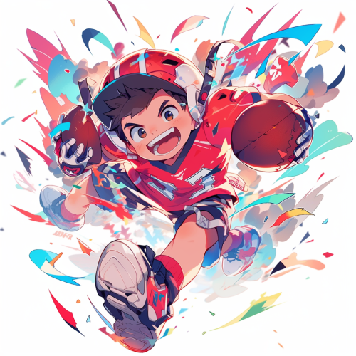 American Football, boy, playful details, white background, t - shirt design --niji 5 --s 200