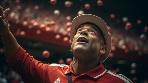 photo of a man playing football inside a volcano, with a goal post, ultra realistic