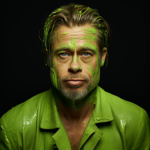 Brad Pitt with no teeth covered in green paint. He really hates it.