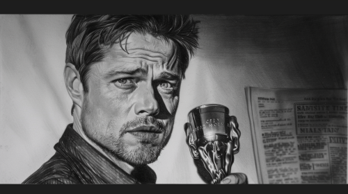 Street style closeup photo of a Brad Pitt, shot on Afga Vista 400, natural lighting --s 250 --style raw